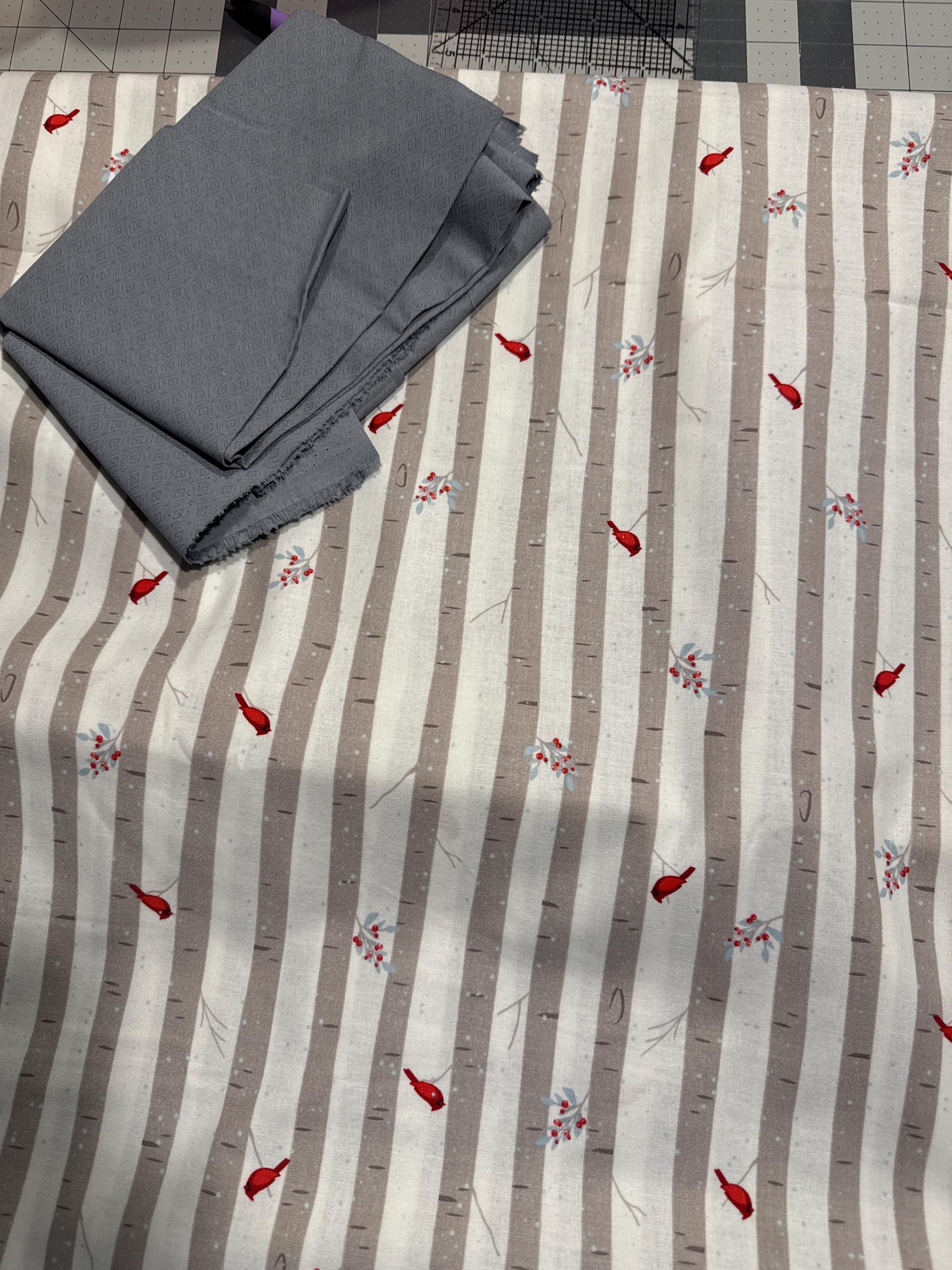 Winterland by Amanda Castor for Riley Blake Designs is great for quilting, apparel and home decor. This print features off white trees with leaves and berries and red cardinals on a snow speckled background.